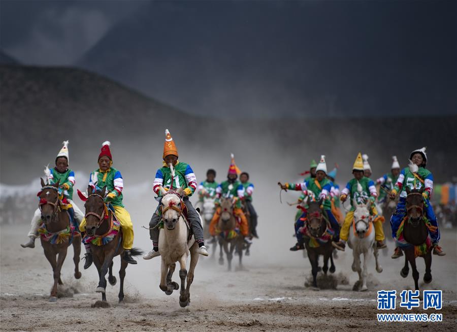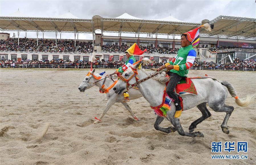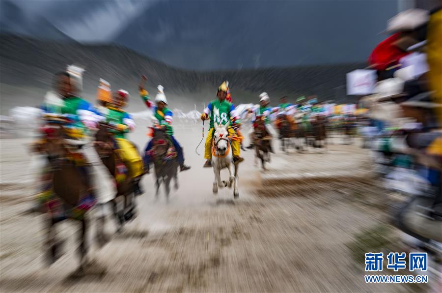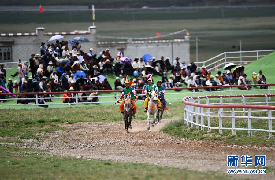 當(dāng)日,“當(dāng)吉仁”賽馬節(jié)比賽之一的五公里馬長(zhǎng)跑比賽在西藏拉薩市當(dāng)雄縣賽馬場(chǎng)舉行。一年一度的“當(dāng)吉仁”賽馬節(jié)8月8日在平均海拔4300米的當(dāng)雄縣開幕,來(lái)自當(dāng)雄草原的牧民,騎著自家的馬匹參加比賽,策馬揚(yáng)鞭,一決高下。