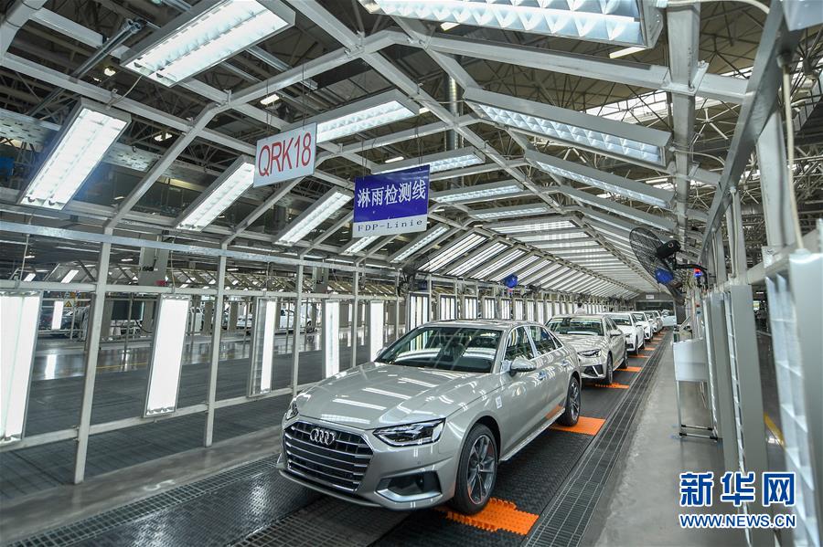 8月10日,在一汽-大眾長春基地總裝車間,裝配好的車輛接受淋雨測試。中國第一汽車集團(tuán)有限公司7月銷售整車32.2萬輛,同比增長23.2%,延續(xù)上半年的增長態(tài)勢。新華社記者張楠攝。