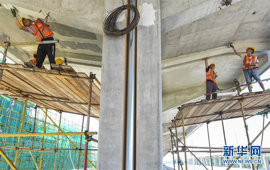 8月10日,工人在京雄城際鐵路霸州北站建設(shè)工地為雨棚梁底抹膩?zhàn)印>┬鄢请H鐵路霸州北站站臺雨棚混凝土結(jié)構(gòu)施工日前全部完成,目前霸州北站已全面轉(zhuǎn)入裝飾裝修和機(jī)電安裝階段,預(yù)計(jì)2020年底投入使用。京雄城際鐵路是連接北京市區(qū)、大興機(jī)場和雄安新區(qū)的重要干線。建成后,將進(jìn)一步完善京津冀區(qū)域高速鐵路網(wǎng)結(jié)構(gòu),便利沿線群眾出行,對于推動(dòng)京津冀協(xié)同發(fā)展和支撐建設(shè)雄安新區(qū)具有重要意義。新華社記者李曉果攝。