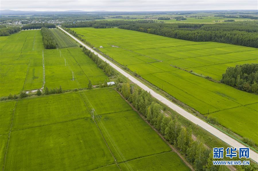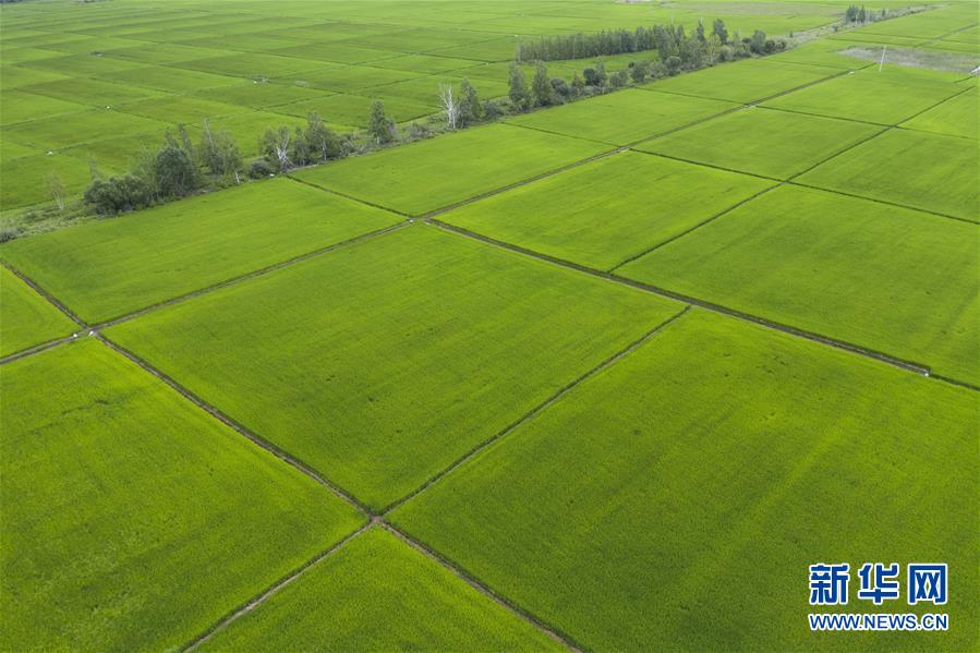 8月11日在撫遠市拍攝的稻田(無人機照片)。時下,“華夏東極”黑龍江省撫遠市的水稻長勢良好,蒼翠的稻田一望無際,猶如綠毯鋪在大地上。新華社記者謝劍飛攝。