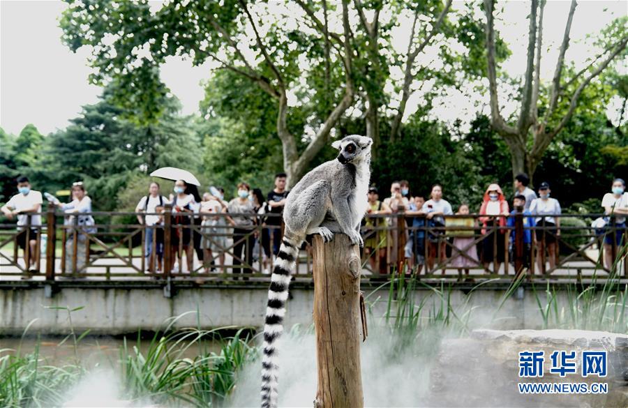 8月11日,上海動物園的環(huán)尾狐猴在“地噴”營造的水霧中玩耍。當日,上海最高溫度達到35攝氏度,上海動物園開啟園內安裝的各種噴淋裝置,讓動物們防暑降溫,樂享清涼。新華社記者張建松攝