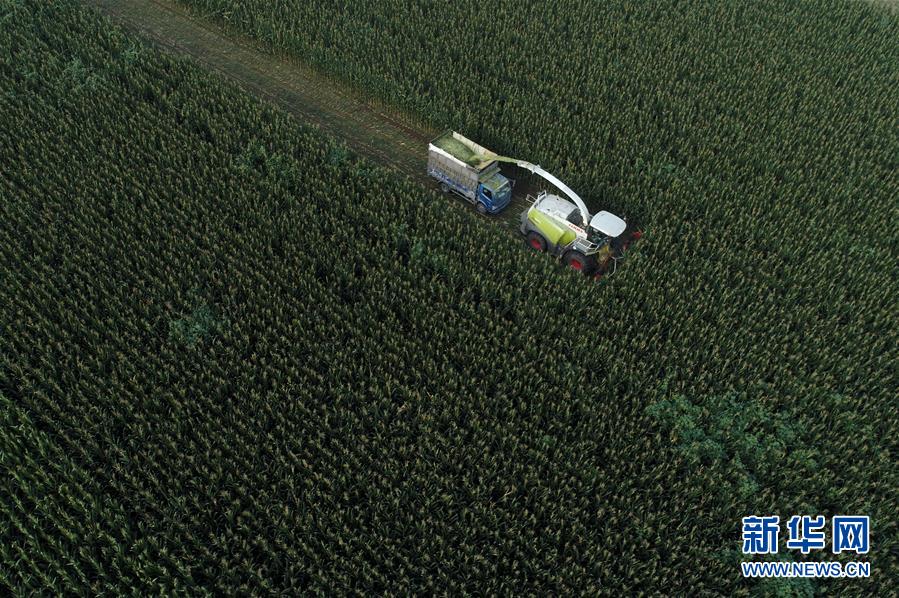 8月11日,灤南縣馬城鎮(zhèn)湛店子村的農民使用大型機械收獲青貯玉米(無人機照片)。近日,河北省灤南縣的12萬畝青貯玉米陸續(xù)開始收獲,為當地奶牛養(yǎng)殖提供新鮮優(yōu)質飼料。作為河北省奶牛養(yǎng)殖大縣,灤南縣近年來大力推廣奶牛青貯玉米喂養(yǎng)模式,引導農民種植青貯玉米,促進農民增收。新華社記者楊世堯攝