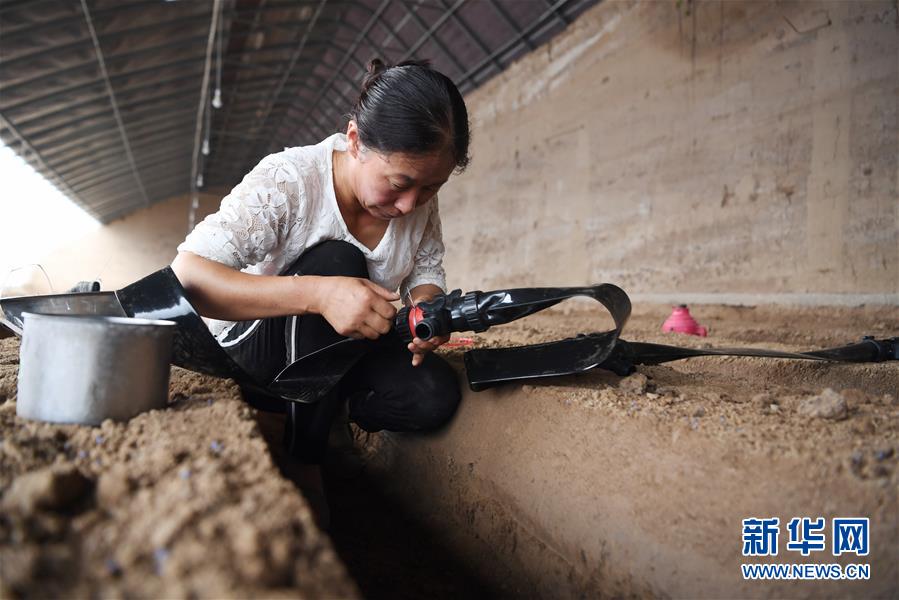8月11日,在甘肅省臨夏回族自治州臨夏縣先鋒鄉(xiāng)前韓村,搬遷戶朱懷蘭在日光溫室內(nèi)勞作。近年來,甘肅省臨夏回族自治州臨夏縣把易地扶貧搬遷作為打贏脫貧攻堅(jiān)戰(zhàn)的重要任務(wù),科學(xué)推進(jìn)易地扶貧搬遷和脫貧攻堅(jiān)工作。為了讓搬遷群眾能夠安居樂業(yè),當(dāng)?shù)卣⒅胤龀趾罄m(xù)產(chǎn)業(yè)發(fā)展,引導(dǎo)搬遷群眾發(fā)展日光溫室、布鞋加工、觀光農(nóng)業(yè)、特色種養(yǎng)殖等產(chǎn)業(yè),幫助搬遷群眾實(shí)現(xiàn)就近就業(yè)、拓寬增收渠道,確保搬遷群眾“搬得出、穩(wěn)得住、有事做、能致富”。新華社記者陳斌攝