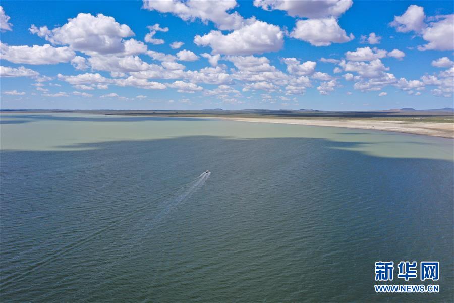 8月11日,游客在克什克騰旗達里諾爾湖乘坐快艇游玩(無人機照片)??耸部蓑v旗位于內(nèi)蒙古自治區(qū)赤峰市西北部,境內(nèi)的湖泊、河流、草原、森林等自然景觀,讓人們流連忘返。新華社記者徐欽攝