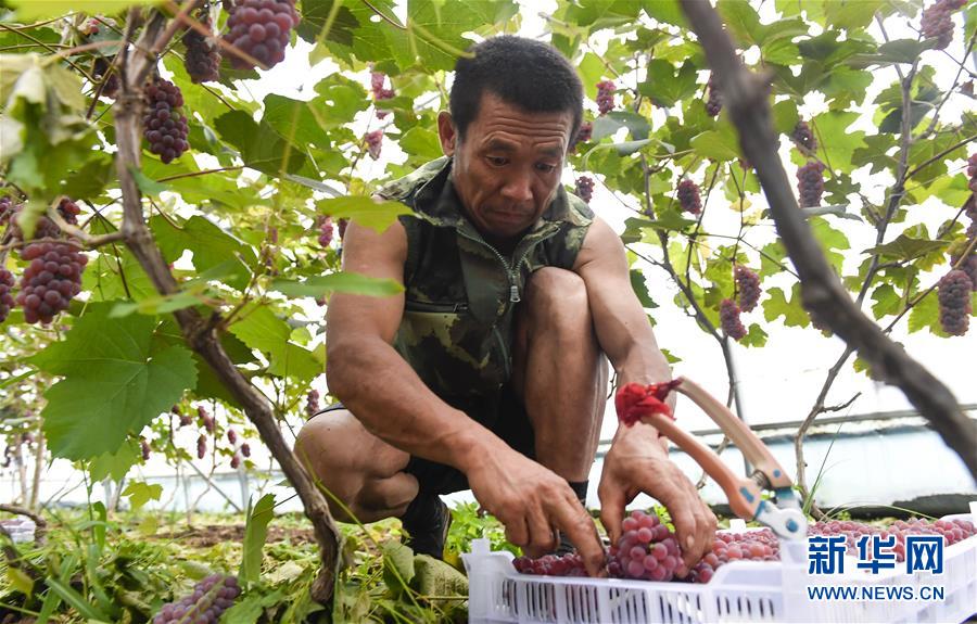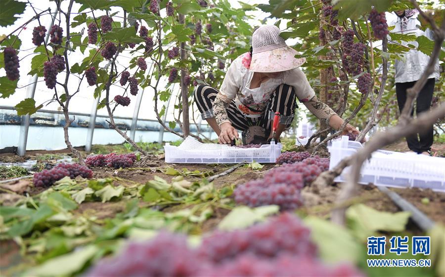 8月13日,在吉林省磐石市煙筒山鎮(zhèn)民主村,村民在葡萄大棚內采摘葡萄。時下,吉林省磐石市煙筒山鎮(zhèn)棚膜葡萄園區(qū)內的大棚葡萄進入采摘季,農(nóng)民喜獲豐收。近年來,當?shù)赝ㄟ^“共創(chuàng)”與“扶持”相結合的模式大力發(fā)展特色農(nóng)業(yè),建設葡萄種植大棚300余棟,以此帶動村集體經(jīng)濟發(fā)展,助力農(nóng)民增收致富。新華社記者許暢攝