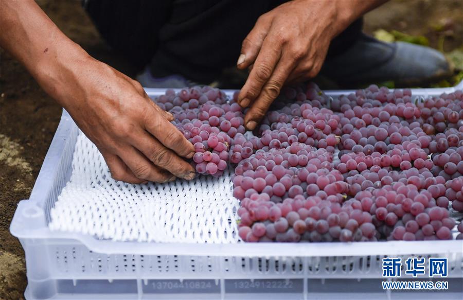 8月13日,在吉林省磐石市煙筒山鎮(zhèn)民主村,村民在葡萄大棚內分裝葡萄。時下,吉林省磐石市煙筒山鎮(zhèn)棚膜葡萄園區(qū)內的大棚葡萄進入采摘季,農(nóng)民喜獲豐收。近年來,當?shù)赝ㄟ^“共創(chuàng)”與“扶持”相結合的模式大力發(fā)展特色農(nóng)業(yè),建設葡萄種植大棚300余棟,以此帶動村集體經(jīng)濟發(fā)展,助力農(nóng)民增收致富。新華社記者許暢攝