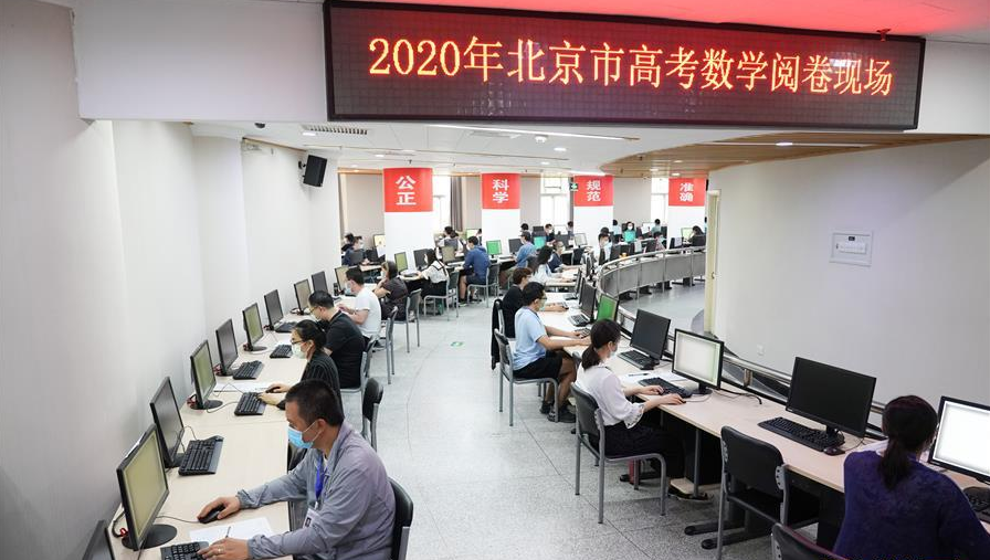 7月16日,評卷老師在位于清華大學(xué)的高考數(shù)學(xué)閱卷現(xiàn)場用計算機(jī)系統(tǒng)閱卷。