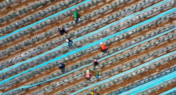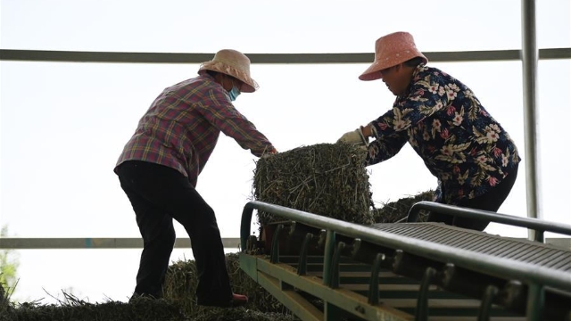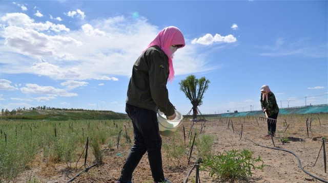 5月28日,內(nèi)蒙古巴彥淖爾市臨河區(qū)新華鎮(zhèn)新樂(lè)村村民在田間勞作。