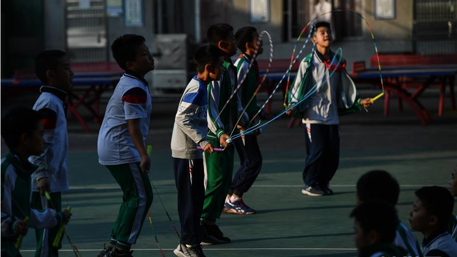 手中的繩子快得看不到影,兩腳急速交替點(diǎn)地,弓著腰背,目光堅(jiān)毅,正在訓(xùn)練的鐘煒?shù)h來(lái)自廣州市花都區(qū)七星小學(xué),是學(xué)校跳繩隊(duì)的一員,年僅10歲的他有一個(gè)響亮的稱號(hào)“世界跳繩冠軍”。沒(méi)人能想到,這所不起眼的鄉(xiāng)村小學(xué)先后培養(yǎng)出33名世界跳繩冠軍、11次打破跳繩世界紀(jì)錄,這些星光閃耀的世界冠軍有些是外來(lái)務(wù)工人員的孩子,有些是當(dāng)?shù)氐牧羰貎和?/p>