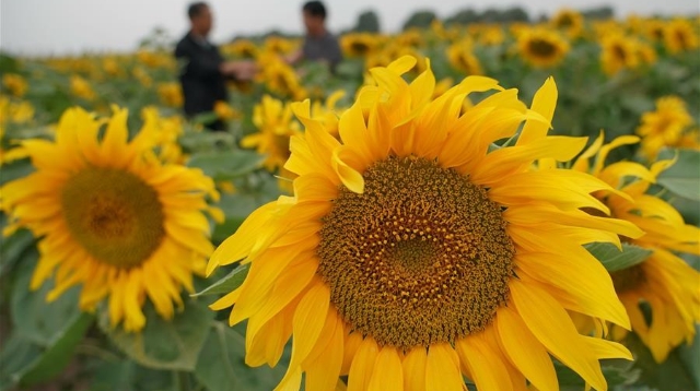 初秋時(shí)節(jié),位于甘肅省白銀市景泰縣寺灘鄉(xiāng)的十萬畝向日葵競相綻放,金黃的葵花張開“笑臉”,迎接豐收。