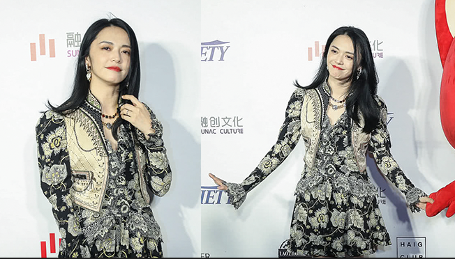 女演員姚晨亮相,穿黑白泡泡袖印花連衣裙,戴項(xiàng)鏈優(yōu)雅迷人