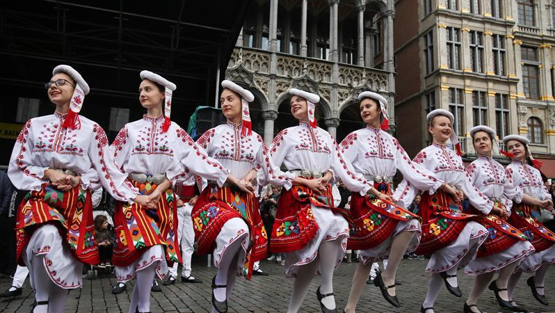 當(dāng)日,來自歐洲多個國家的表演者在比利時布魯塞爾大廣場載歌載舞,慶祝為期五天的2019年巴爾干文化藝術(shù)節(jié)圓滿落幕。