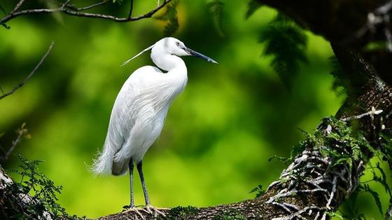 福州西湖公園墨池的湖心小島上,有4棵年歲久遠(yuǎn)的重陽木樹。初春時節(jié),鳥兒在苔蘚遍布的樹枝嬉戲、停歇,引得市民駐足流連。