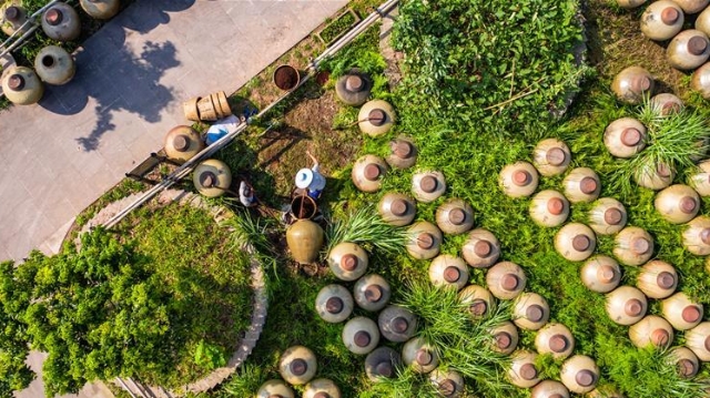 “赤水曬醋”采用固體發(fā)酵繁殖產(chǎn)生天然醋酸菌,醋醅和成品醋都在日光下曝曬而成,故稱曬醋。“赤水曬醋”制作歷史悠久,工序考究,2009年被列入貴州省級非遺名錄。