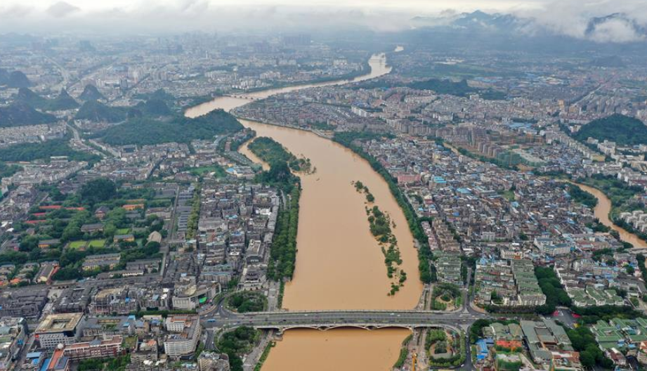 這是6月9日拍攝的廣西桂林市區(qū)(無人機照片)。