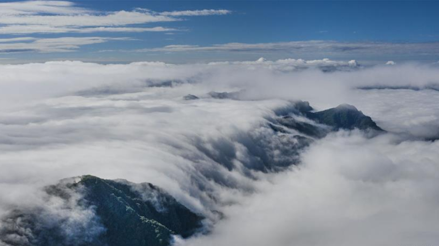 6月10日拍攝的漢中市南鄭區(qū)龍頭山景區(qū)的云海景觀(無人機照片)。