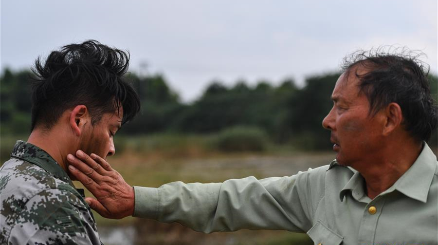 7月18日,陳申桃和兒子在東升堤附近處理一起泡泉險情。