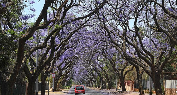 每年十月,種植有數(shù)萬株藍(lán)花楹樹的比勒陀利亞都會成為一片紫色的海洋,故有“藍(lán)花楹之城”美譽。