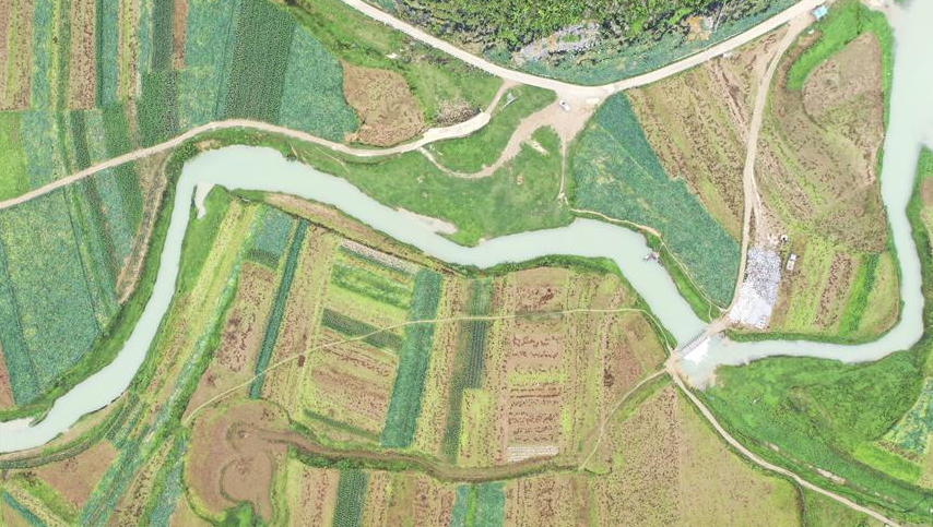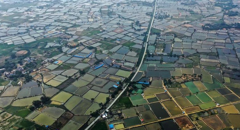 暮春時(shí)節(jié),從空中俯瞰廣西北海市合浦縣大地,河流、稻田、蝦塘、道路、村莊星羅棋布、色彩斑斕,美不勝收。