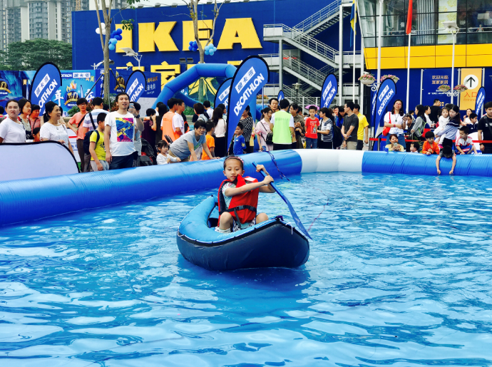 記者在現(xiàn)場(chǎng)看到,迪卡儂在外廣場(chǎng)準(zhǔn)備了攀巖、籃球、高爾夫、皮劃艇、平衡車等諸多運(yùn)動(dòng)項(xiàng)目供市民體驗(yàn)。不少市民更是帶著孩子們?cè)诟黜?xiàng)目競(jìng)賽,玩得不亦樂(lè)乎。據(jù)了解,該活動(dòng)僅在五一期間開(kāi)放。