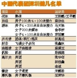 王柳懿和王芊懿將出戰(zhàn)花樣游泳集體項(xiàng)目,張華創(chuàng)、林鈺鑫和金誠(chéng)將參加高爾夫男子團(tuán)體項(xiàng)目。深圳體工大隊(duì)副大隊(duì)長(zhǎng)譚麗宏表示:“花樣游泳王柳懿、王芊懿這對(duì)雙胞胎姐妹曾經(jīng)在世錦賽上奪得金牌,她們目前在國(guó)家隊(duì)訓(xùn)練,狀態(tài)比較好;高爾夫選手在國(guó)外訓(xùn)練比賽多,曲棍球選手梁美玉曾經(jīng)參加過兩屆奧運(yùn)會(huì)?!?