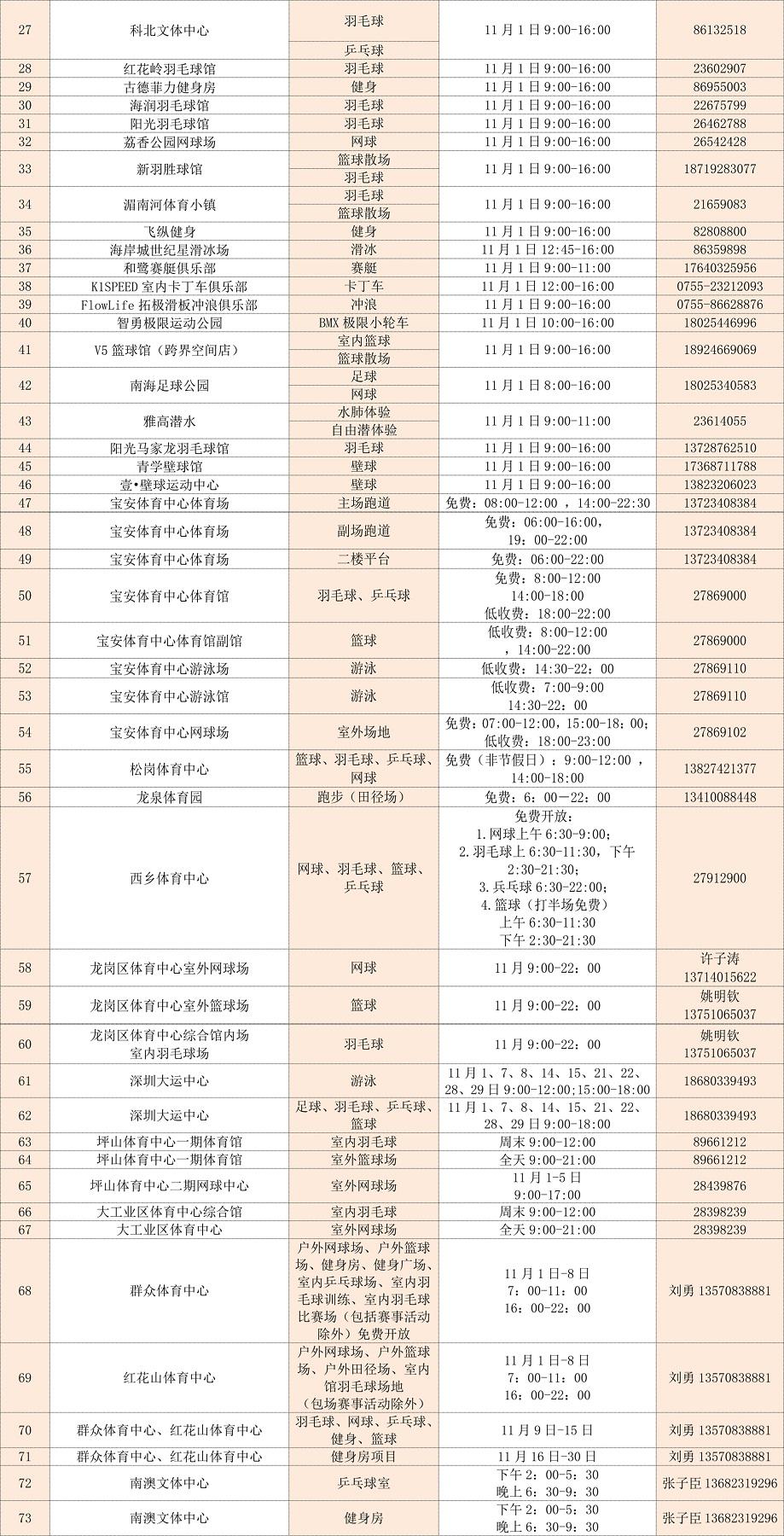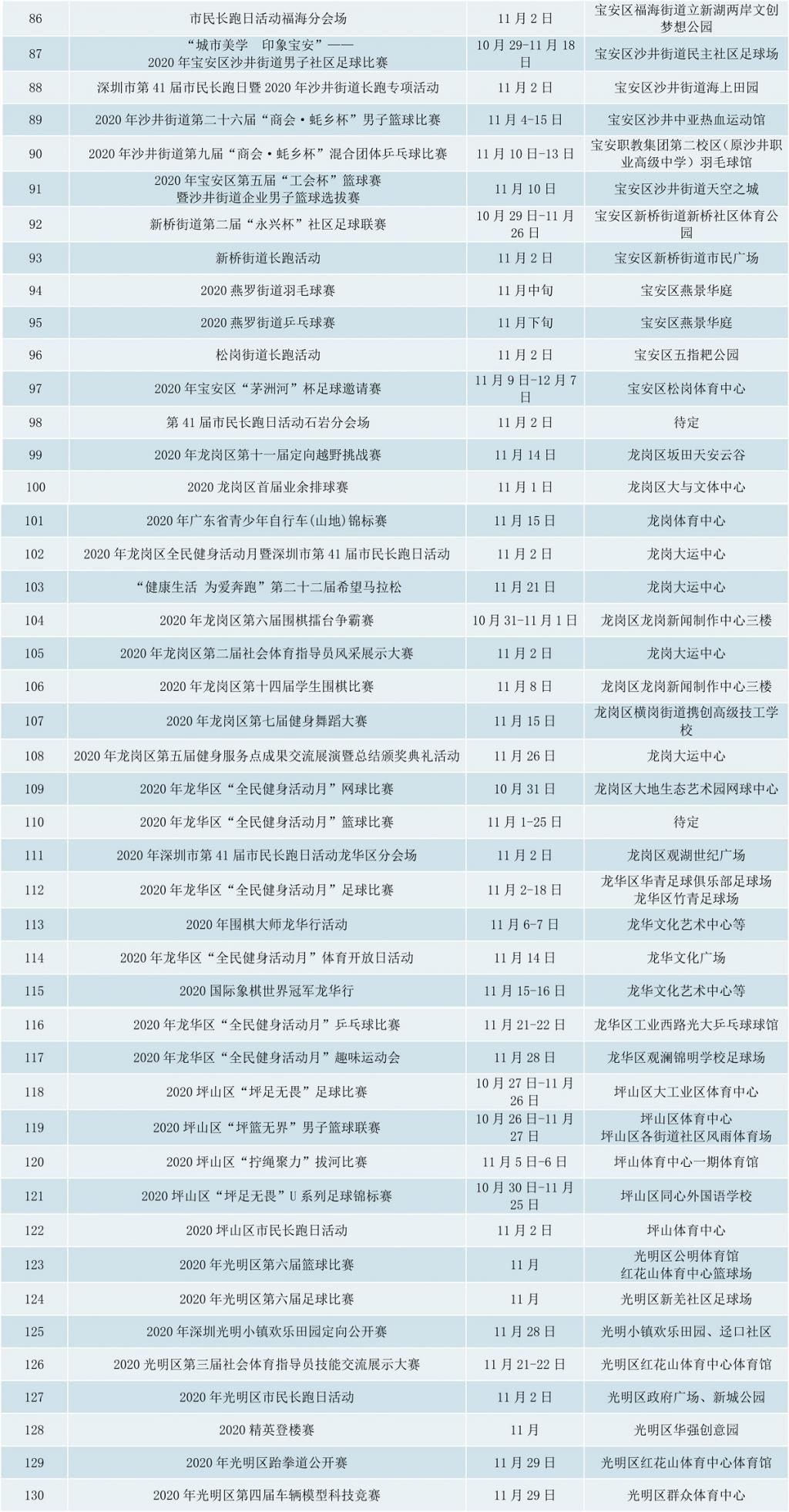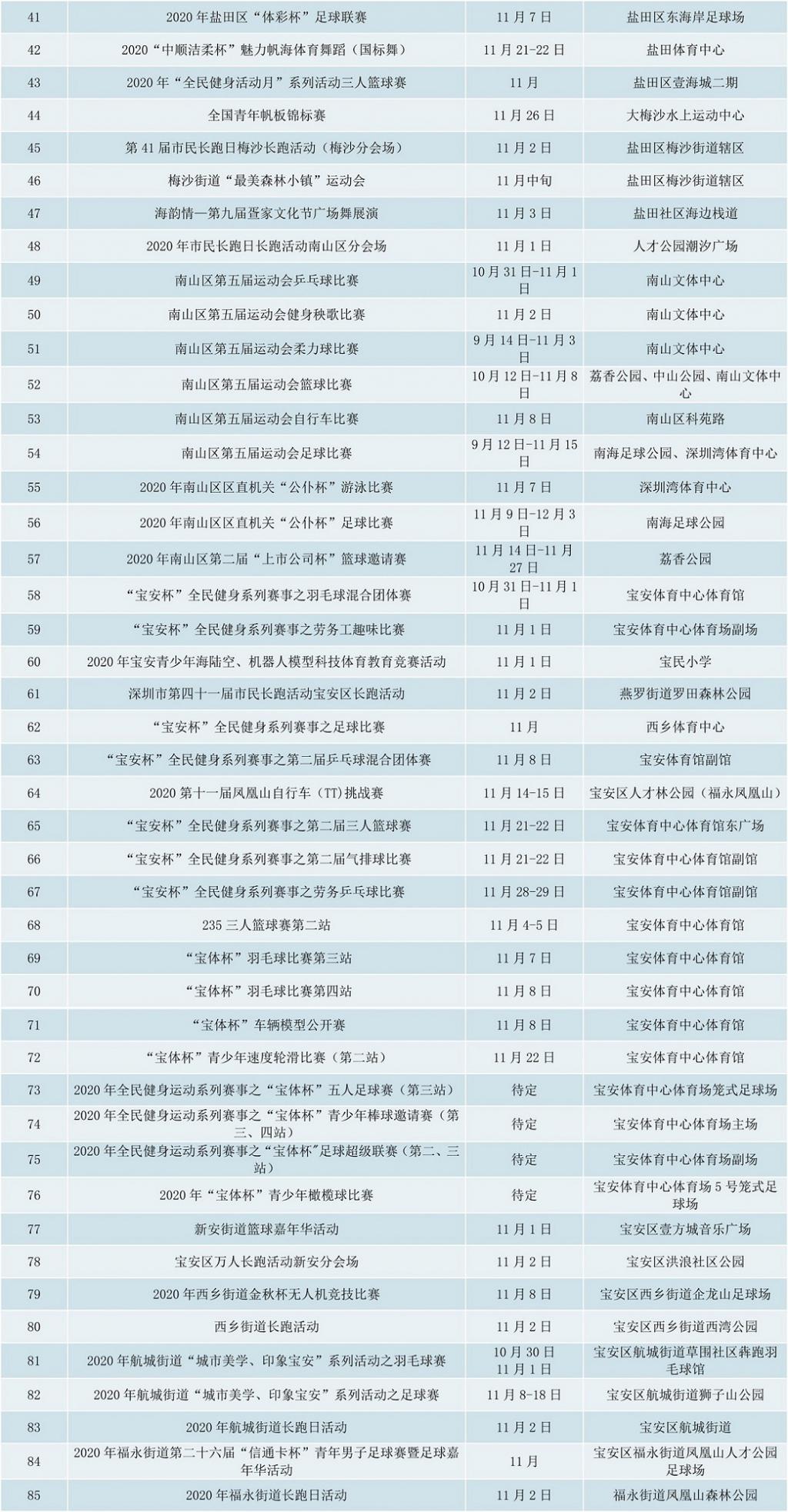 2020深圳全民健身活動月社會體育指導(dǎo)員服務(wù)點(diǎn)表: