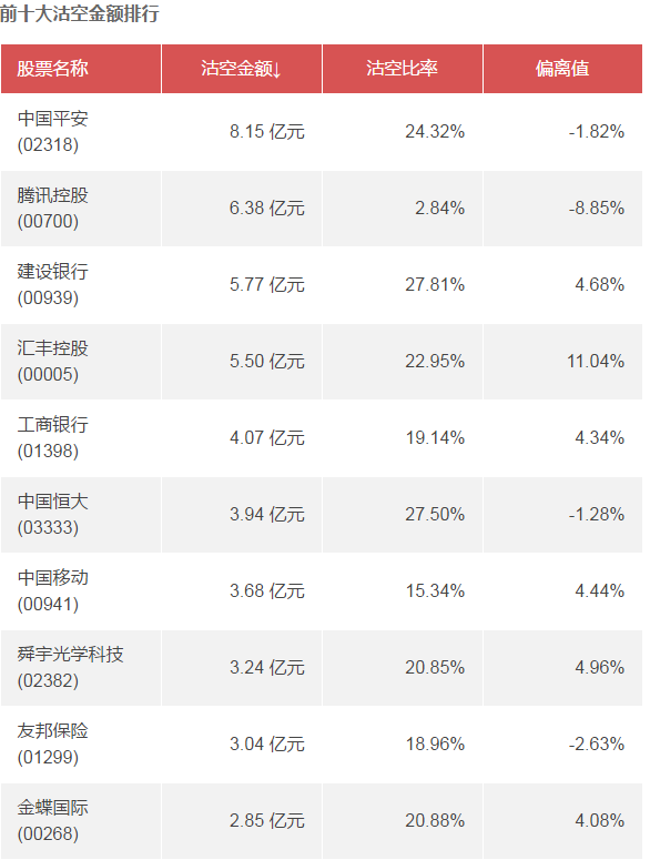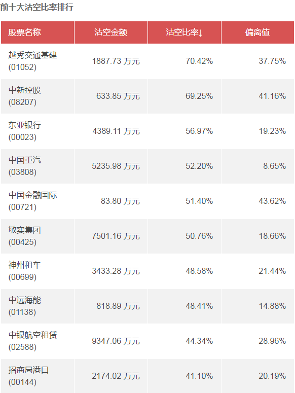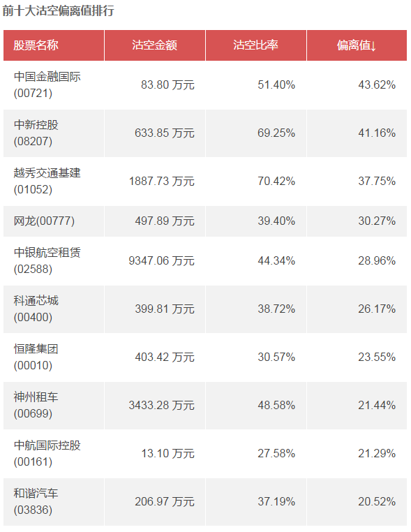 備注:以上數(shù)據(jù)由智通機器人根據(jù)港交所數(shù)據(jù),經過人工智能運算后自動生成,并不保證數(shù)據(jù)100%準確;偏離值為當前股票的沽空比率與該股過去30天平均沽空比率的差值。