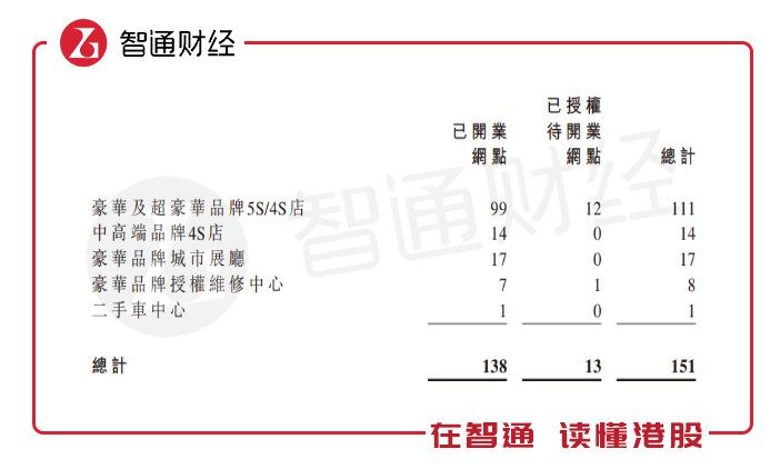 4S店仍是正通投資的重點(diǎn),智通財(cái)經(jīng)APP了解到,上半年該公司建成開業(yè)4家豪華汽車運(yùn)營(yíng)網(wǎng)點(diǎn),其中奔馳一家,寶馬一家,紅旗兩家,截至到6月60日,共有138家4S店,已授權(quán)待開業(yè)的有13家,合計(jì)151家。