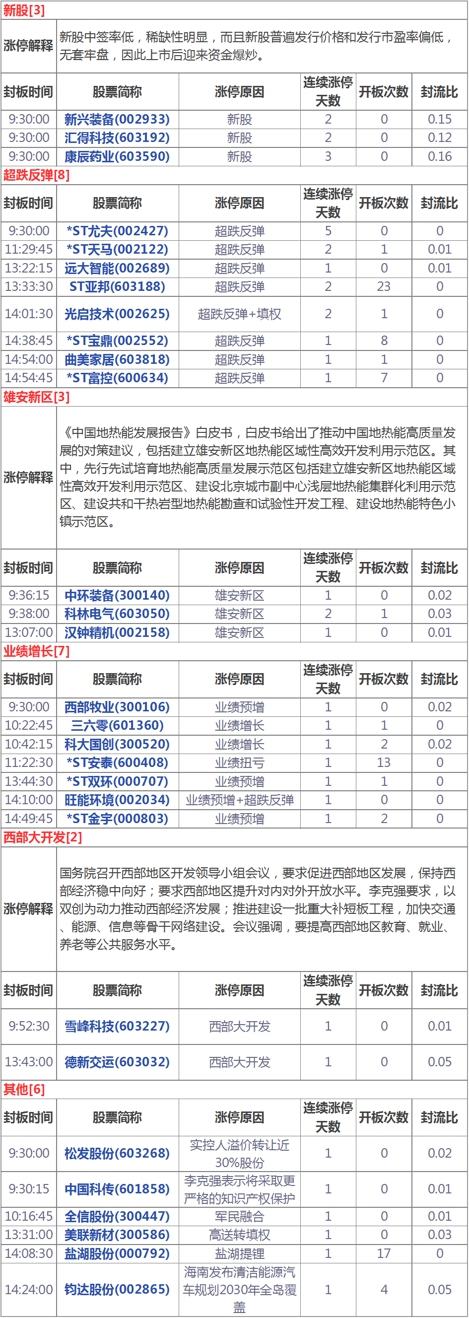 今天漲停家數(shù)較上一交易日有所減少,兩市29家漲停;跌停8家。成交量方面,滬市成交1012億元,深市成交1451億元,兩市總成交額約為2463億元,較上一交易日縮量451億元。盤面上,知識產(chǎn)權(quán)保護、養(yǎng)殖業(yè)、網(wǎng)絡(luò)安全等板塊漲幅居前;鈦白粉、高送轉(zhuǎn)、稀土永磁等板塊跌幅居前。