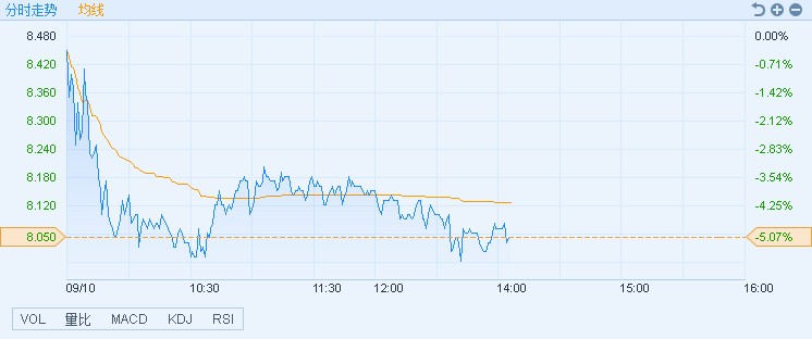 智通財(cái)經(jīng)APP獲悉,金蝶國際(00268)遭聯(lián)席券商花旗大量拋售,股價(jià)下挫,截至14時05分,跌5.07%,報(bào)價(jià)8.05港元,成交額2.17億。