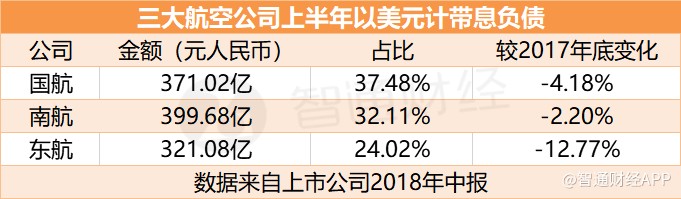 智通財(cái)經(jīng)APP了解到,2015年高峰時,三大航空公司美元負(fù)債水平普遍在80%左右。2018年中期財(cái)報顯示,截止2018年6月30日,國航以美元計(jì)的帶息負(fù)債占帶息負(fù)債總額比重已經(jīng)降至37.48%,南航、東航的美元帶息負(fù)債占比也分別降至32.11%、24.02%。絕對金額方面,目前以人民幣計(jì)美元有息負(fù)債規(guī)模,國航為371.02億、南航399.68億、東航321.08億。