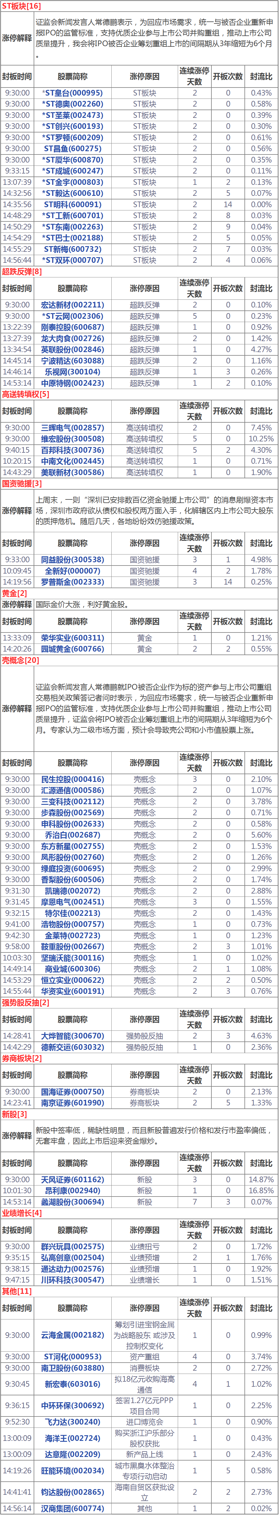 漲停分析:指數(shù)單邊下行 ST板塊持續(xù)受追捧 (10月23日)