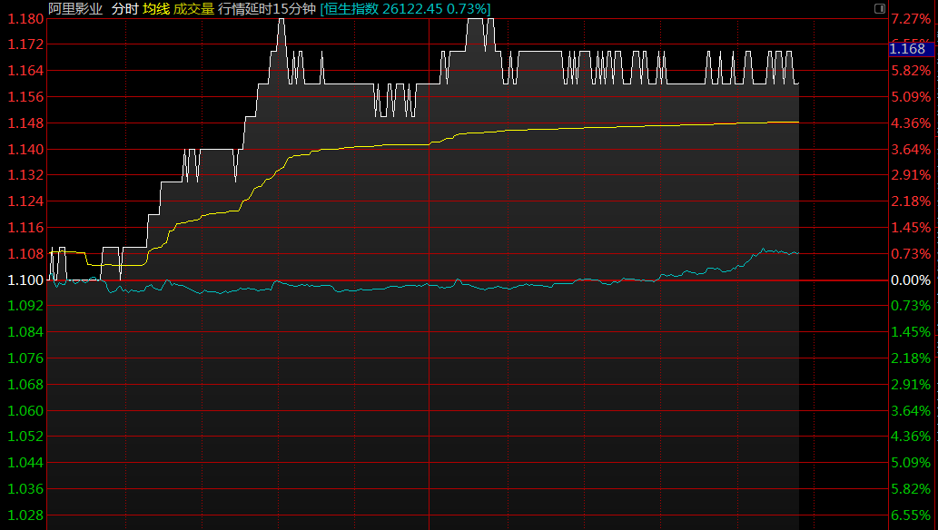 港股異動︱阿里影業(yè)(01060)漲6.36%本周四公布中期業(yè)績