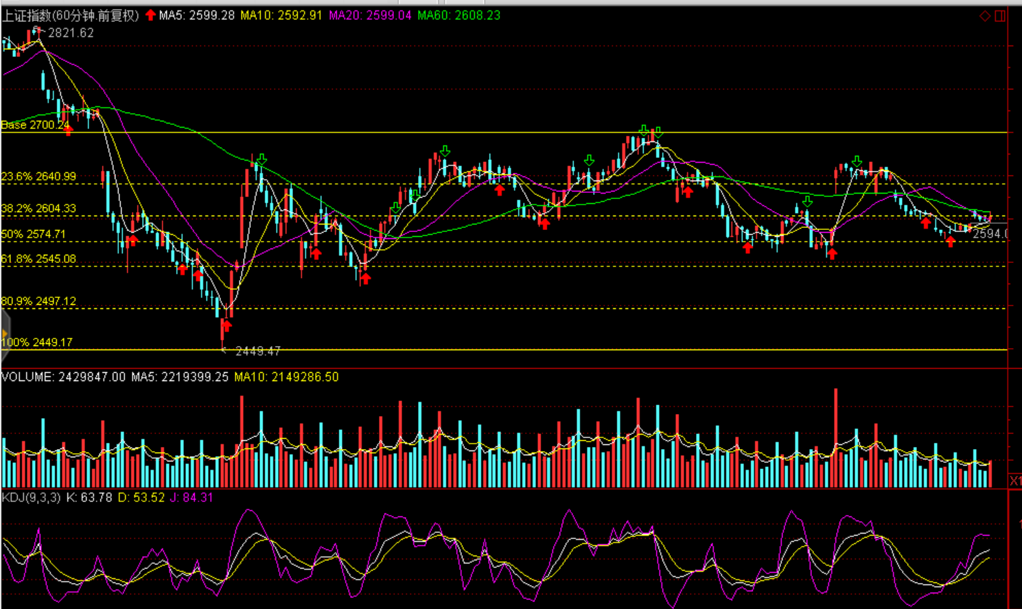 技術(shù)面:縮量窄幅震蕩,60分鐘KDJ金叉,短期延續(xù)弱勢反彈,黃金分割滬綜指2640點、創(chuàng)業(yè)板1360點存在壓力。