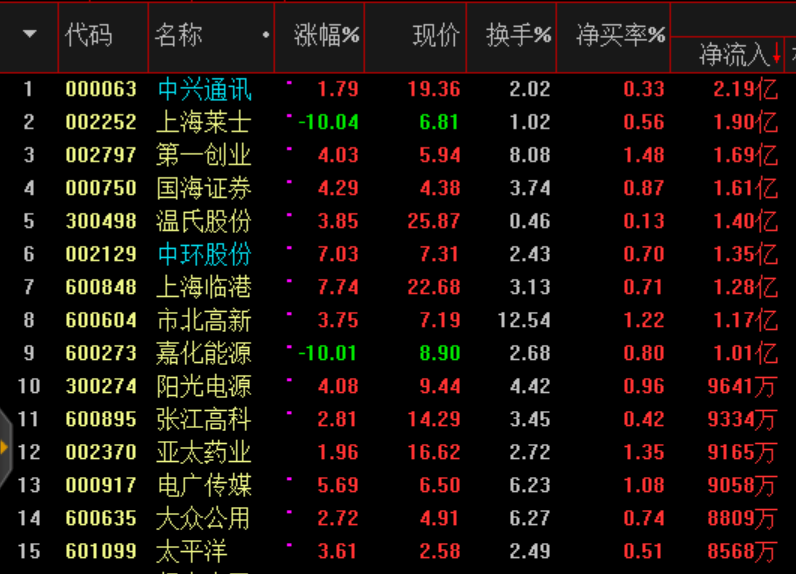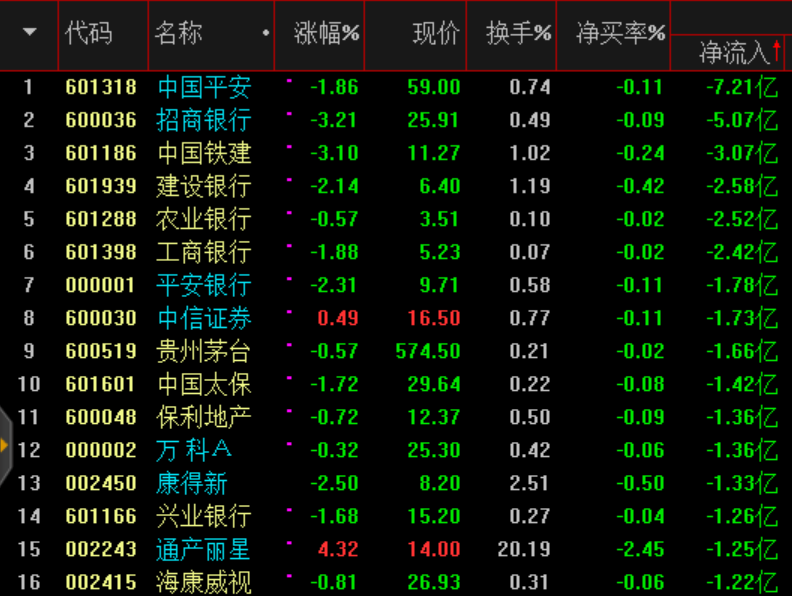周四資金流向看權重股流出較大: