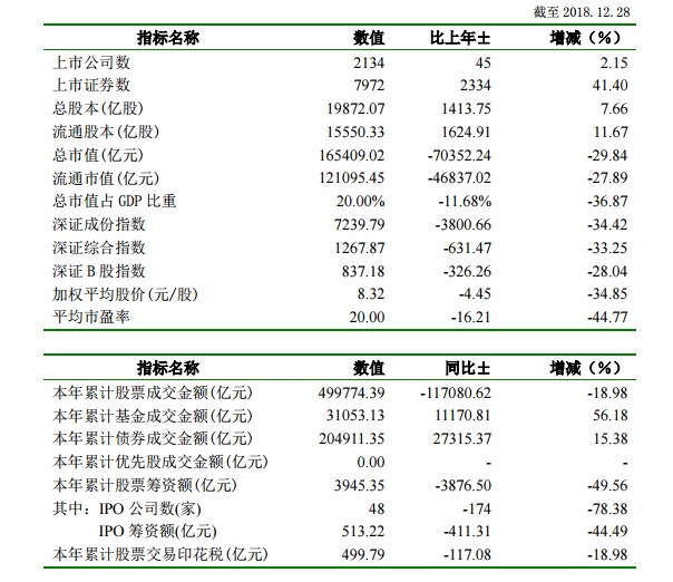 深交所于12月28日晚間發(fā)布2018年深圳證券市場概況數(shù)據(jù)顯示,截至當(dāng)日收市,加權(quán)平均股價為8.32元/股,跌34.85%。平均市盈率跌44.77%至20倍。