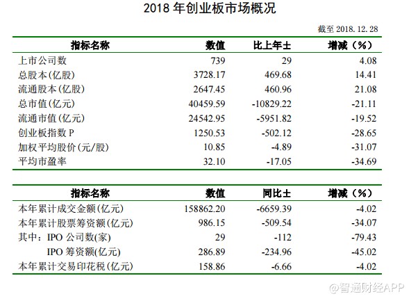 創(chuàng)業(yè)板上市公司739家,增4.08%,總市值40459.59億元,跌21.11%。加權(quán)平均股價跌31%。平均市盈率32倍。(文文)