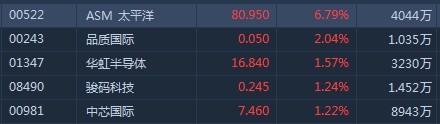 智通財經(jīng)APP獲悉,昨日芯片股受市場追捧,集體大漲。今日早盤板塊漲勢延,截至9時57分,ASM太平洋(00522)漲6.79%,報價80.95港元,華虹半導體(01347)、瑞聲科技(02018)及中芯國際(00981)升逾1%。