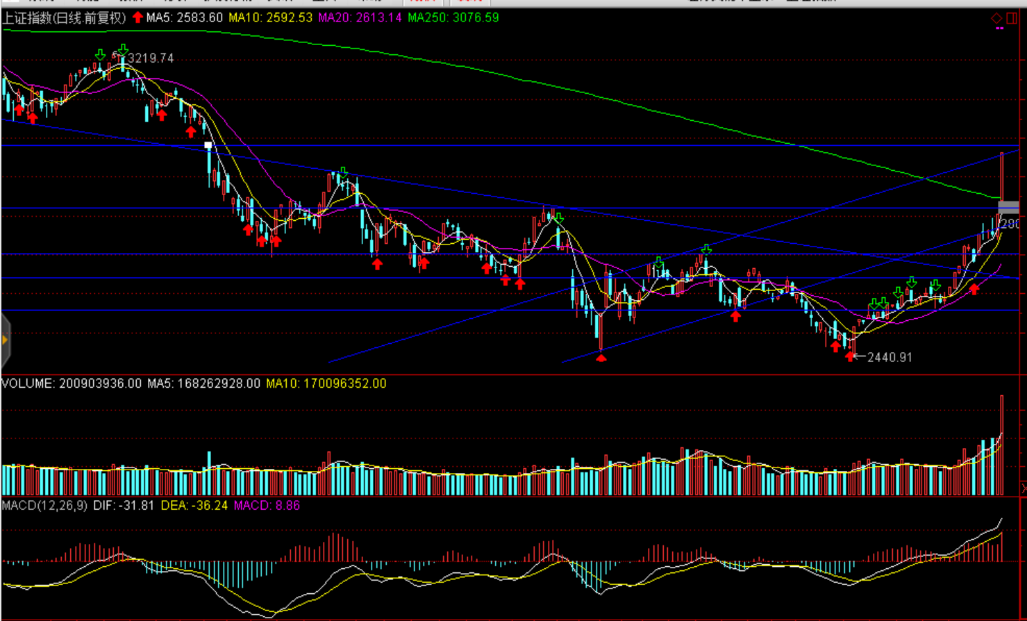 周一兩市大幅放量、強勢上揚,三大股指均以大陽報收。上證綜指收漲5.6%報2961.28點,創(chuàng)2015年7月以來最大日漲幅、深證成指漲5.59%報9134.58點、創(chuàng)業(yè)板指漲5.5%報1536.37點、上證50漲6.28%。兩市巨量成交1.04萬億元,環(huán)比大幅增加4182億元,刷新2015年11月以來新高;北上資金結束連續(xù)18日凈流入,凈流出7億元;盤面看券商、保險、銀行、5G通信、國產(chǎn)軟件、金融科技板及創(chuàng)投塊漲幅居前。整體看市場受到中美貿(mào)易磋商達成共識、金融供給側改革內(nèi)外利好因素影響,場外資金加速進場,市場進入階段性亢奮。