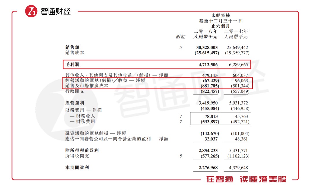 此次業(yè)績大幅下滑主要由原材料成本上升及產(chǎn)品售價(jià)下跌所致,雖銷售額同比增長,但也擋不住毛利潤下降拖動(dòng)盈利下滑。除此之外,經(jīng)營活動(dòng)匯兌損益同比下降170%,銷售及市場(chǎng)推廣成本同比增長了75.88%,也拉低了經(jīng)營盈利的整體增速。