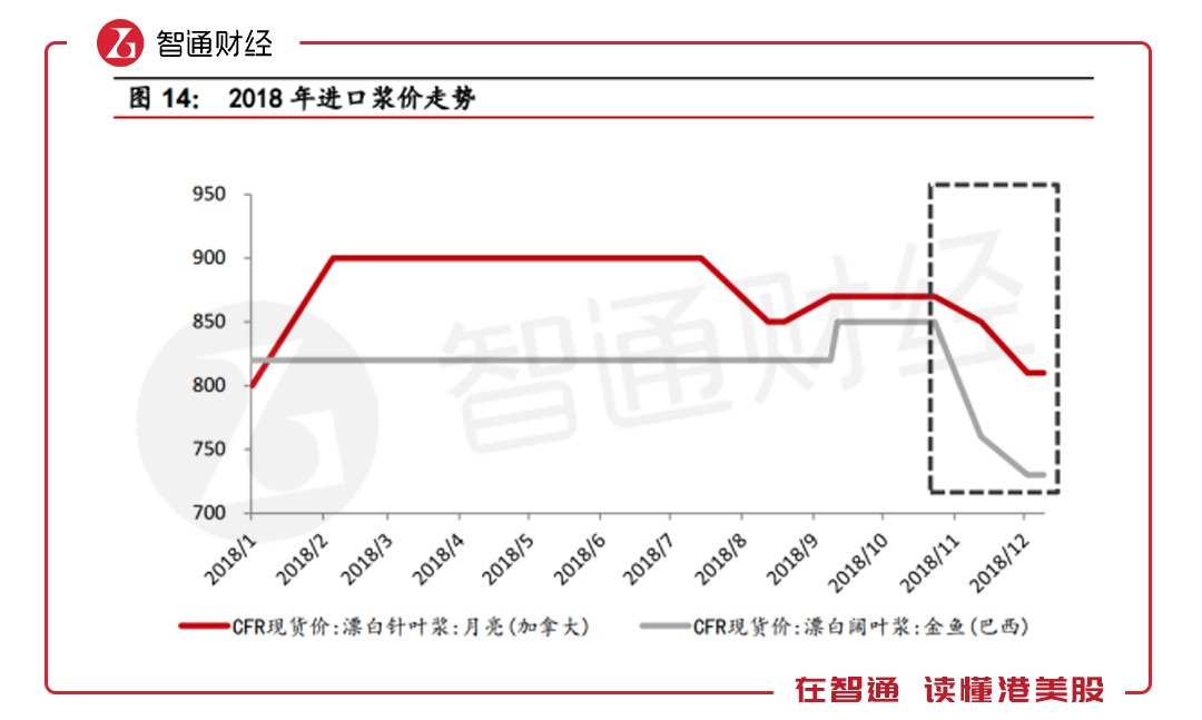 紙漿方面,據(jù)智通財(cái)經(jīng)APP了解,隨著境外大型漿企集中度提升,價(jià)格控制能力加強(qiáng),有助于漿價(jià)的穩(wěn)定。在需求端,有券商預(yù)計(jì),2019年新增總需求約200萬噸,短期將以去庫存為主,漿價(jià)會(huì)面臨下行壓力,而長期由于全球供需平衡,紙漿價(jià)格將維持平穩(wěn)。