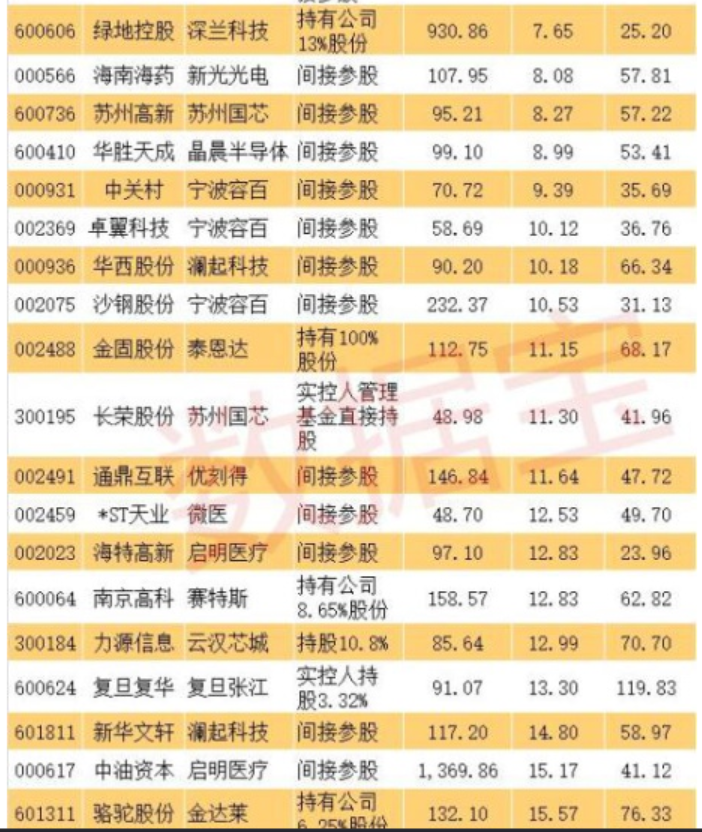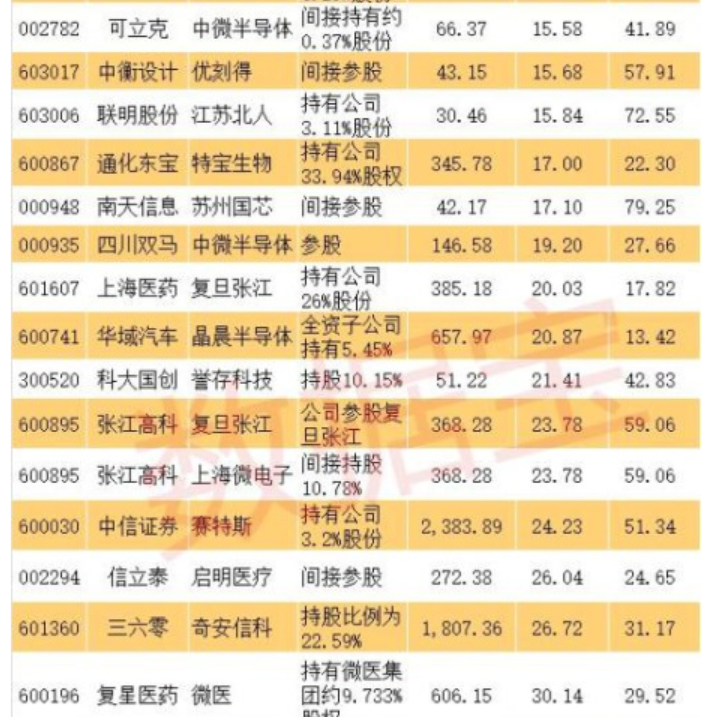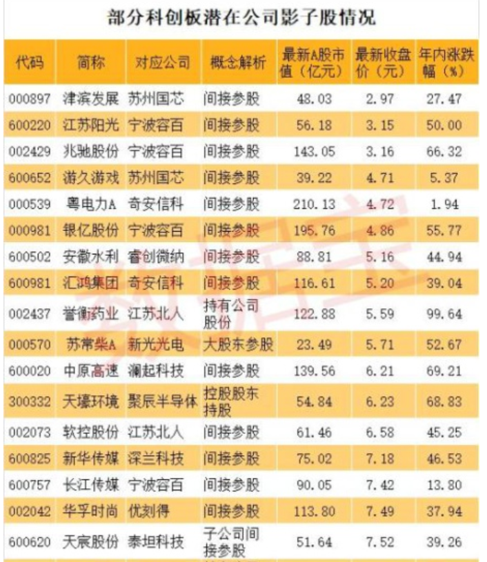 科創(chuàng)板影子股:首批創(chuàng)業(yè)板潛在公司背后有超過50只影子股,而這些影子股大多是間接持股。從持股比例來看,最大的是金固股份,持有泰恩達100%股權。其他影子股持股比例較大的還有,通化東寶持有33.94%特寶生物、上海醫(yī)藥持有26%復旦張江、三六零持有22.59%奇安信科、張江高科間接持有10.78%上海微電子、綠地控股持有13%深蘭科技、力源信息持有10.8%云漢芯城、科大國創(chuàng)持有10.15%譽存科技、南京高科持有8.65%賽特斯、駱駝股份持有6.25%金達萊等。