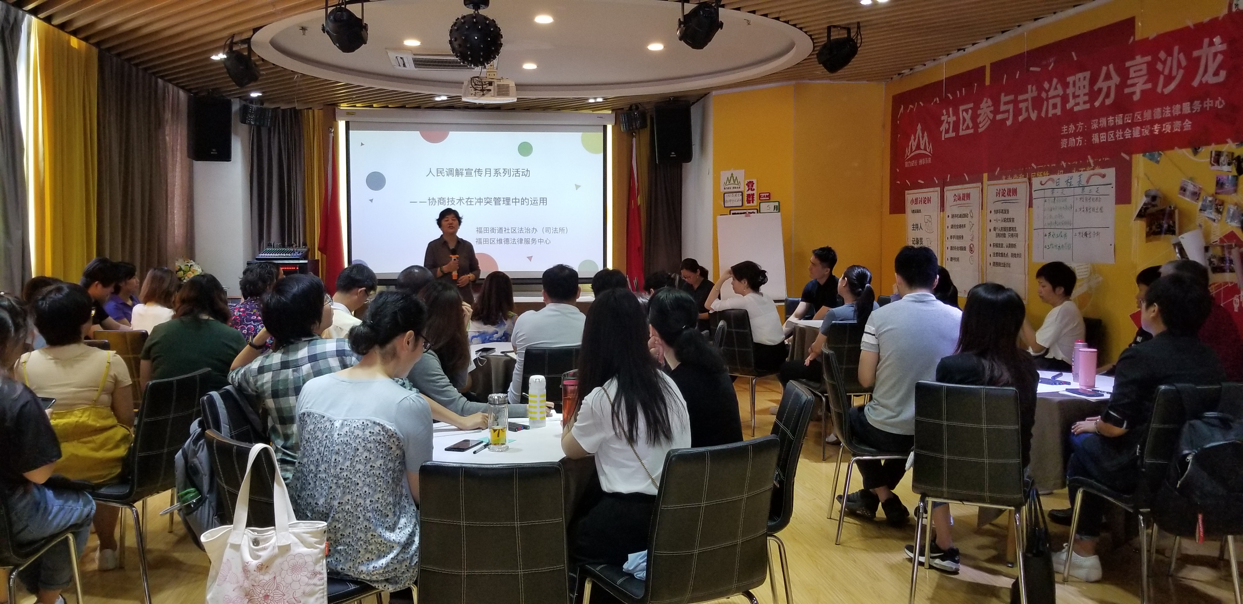 5月15-16日,由“福田區(qū)社會建設(shè)專項(xiàng)資金”資助的社區(qū)議事能力建設(shè)項(xiàng)目在福田區(qū)福田街道“白領(lǐng)e家”開展,來自福田區(qū)各個(gè)社區(qū)的人民調(diào)解員、社區(qū)法律顧問、社會工作者以及深圳市福田區(qū)維德法律服務(wù)中心邀請的志愿律師等80余人次參與了本次“社區(qū)參與式治理分享沙龍”。福田區(qū)街道黨委副書記、人大工委主任劉原鑣、深圳市福田區(qū)維德法律服務(wù)中心執(zhí)行主任李嚴(yán)出席了分享沙龍啟動(dòng)儀式。