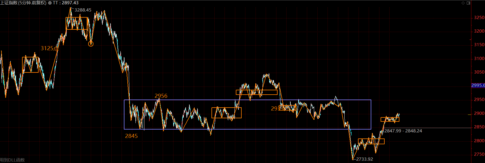 結(jié)合周五盤后的消息,這里五分鐘的上漲趨勢(shì)應(yīng)該已經(jīng)結(jié)束,市場(chǎng)強(qiáng)于預(yù)期,并沒有在中樞下方結(jié)束這段上漲趨勢(shì),而且在中樞的中部,回落后,如果不創(chuàng)新低,則構(gòu)成大級(jí)別的二買,中期大行情可期。短期這里可能會(huì)面臨一波回落,周一早盤如果開在2845上方,則可持股不動(dòng),如果低于2845點(diǎn),則可在上拉時(shí)適度減倉,后續(xù)在2733與2800之間擇機(jī)回補(bǔ)。