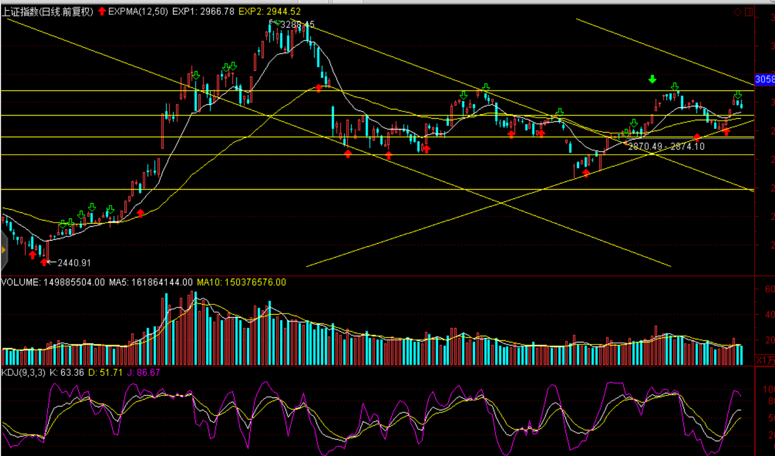 技術(shù)面:延續(xù)上行趨勢,短期調(diào)整分時指標,60分鐘KDJ重回低位;滬綜指今日支撐2970點、壓力2993點。