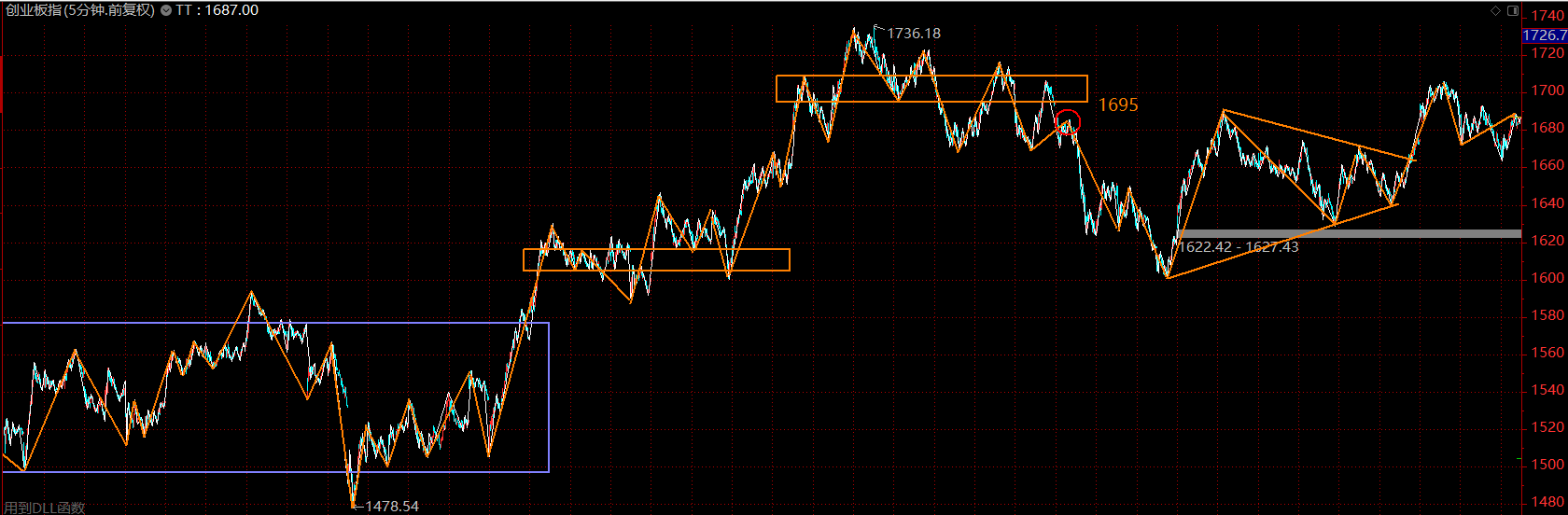 創(chuàng)業(yè)板形態(tài)上是一個三角形收斂突破的回踩,基本認定這里短線整固結(jié)束,本周大概率會沖擊前高1736點,盡量持股待漲。點位來看,短線1670點附近較為關(guān)鍵。