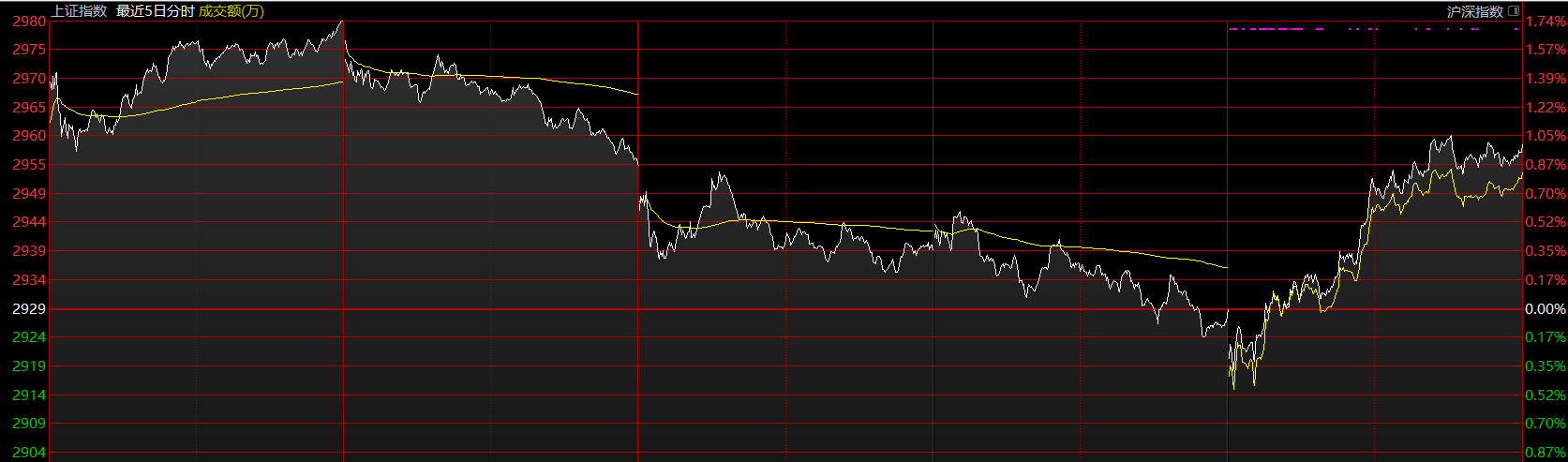 上證指數(shù)又一次站上了2956點,從小級別看,這里短線看2945點支撐力度,撐住了就是五分鐘級別三買,以目前的市場氛圍及外圍情況看,短期應(yīng)該可以突破3000點。所以本周初投資者可重點觀察2945點的支撐力度來作為自己的操盤依據(jù)。