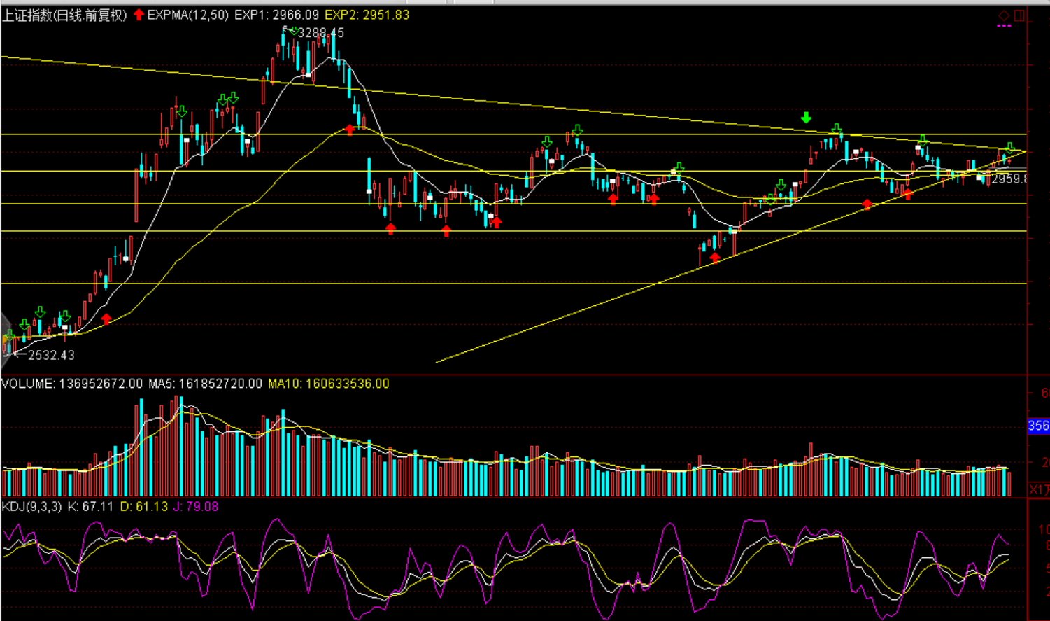 技術(shù)面:自9月16日以來的收斂三角形短期面臨方向性選擇,股指有望向上挑戰(zhàn)3020--3050點(diǎn)區(qū)間密集成交區(qū)。