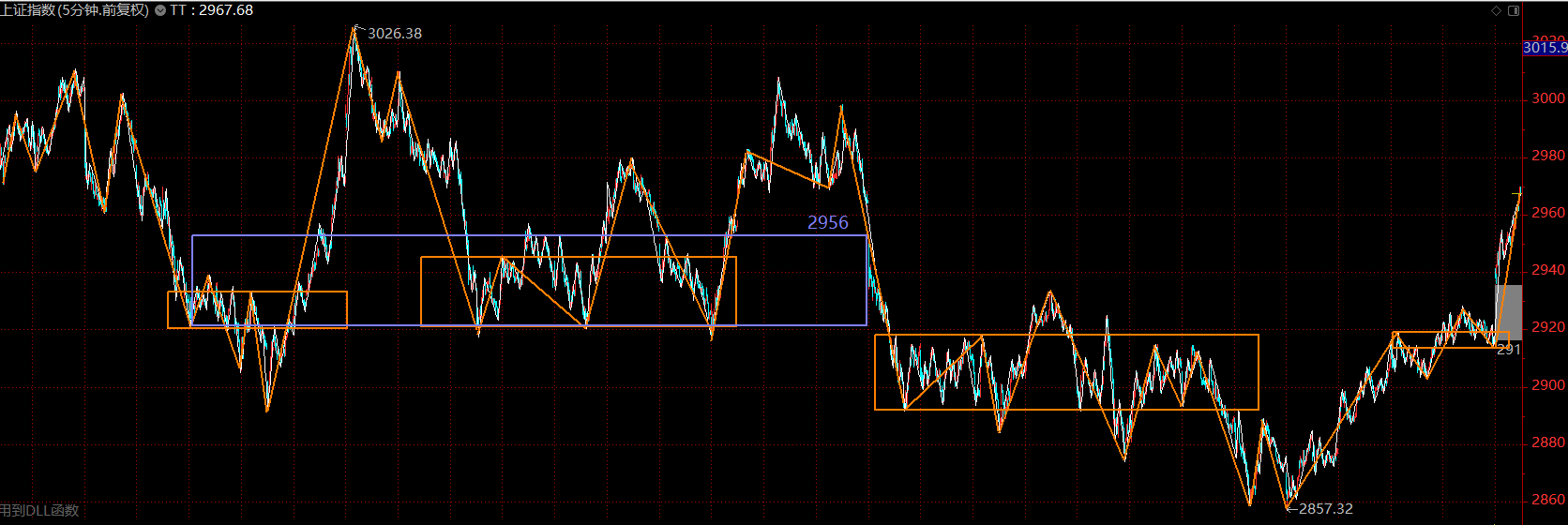 上周市場(chǎng)用前四天的時(shí)間,完成了這一輪五分鐘上漲趨勢(shì)的第一個(gè)中樞構(gòu)建,是一個(gè)奔走型的中樞,隨后在周五開始了主升階段。值得欣喜的是,市場(chǎng)終于在2956這個(gè)大關(guān)口放量了,并且一舉突破,預(yù)計(jì)在2956到3000點(diǎn)這40點(diǎn)的空間內(nèi),市場(chǎng)將會(huì)完成五分鐘上漲第二個(gè)中樞的構(gòu)建,并且橫盤將其擴(kuò)展為30分鐘級(jí)別,時(shí)間周期大約是極點(diǎn)出現(xiàn)后的10到15個(gè)交易日。這將是投資者積極調(diào)倉(cāng)換股,耐心布局年報(bào)行情的最佳時(shí)期。
