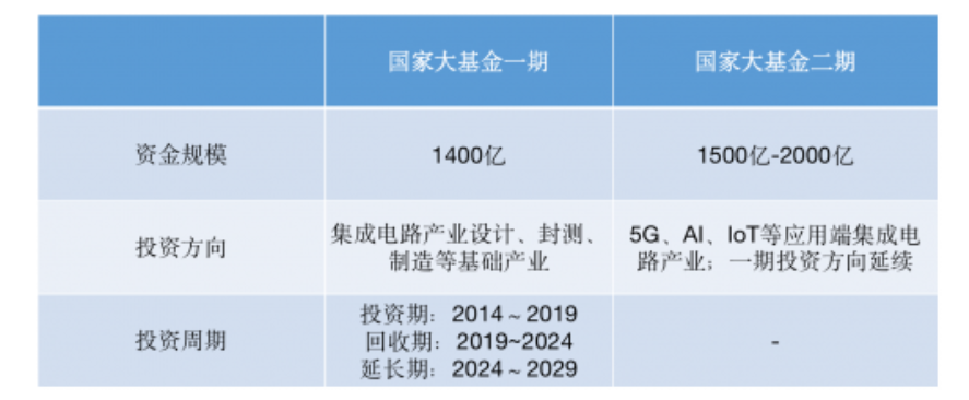 二期更側(cè)重于應(yīng)用端,例如下游5G、AIoT等技術(shù)引領(lǐng)的集成電路應(yīng)用產(chǎn)業(yè);大基金二期將關(guān)注刻蝕機(jī)、薄膜設(shè)備、測試設(shè)備和清洗設(shè)備等領(lǐng)域企業(yè),另外將開展光刻機(jī)、化學(xué)機(jī)械研磨設(shè)備等核心設(shè)備以及關(guān)鍵零部件的投資布局。